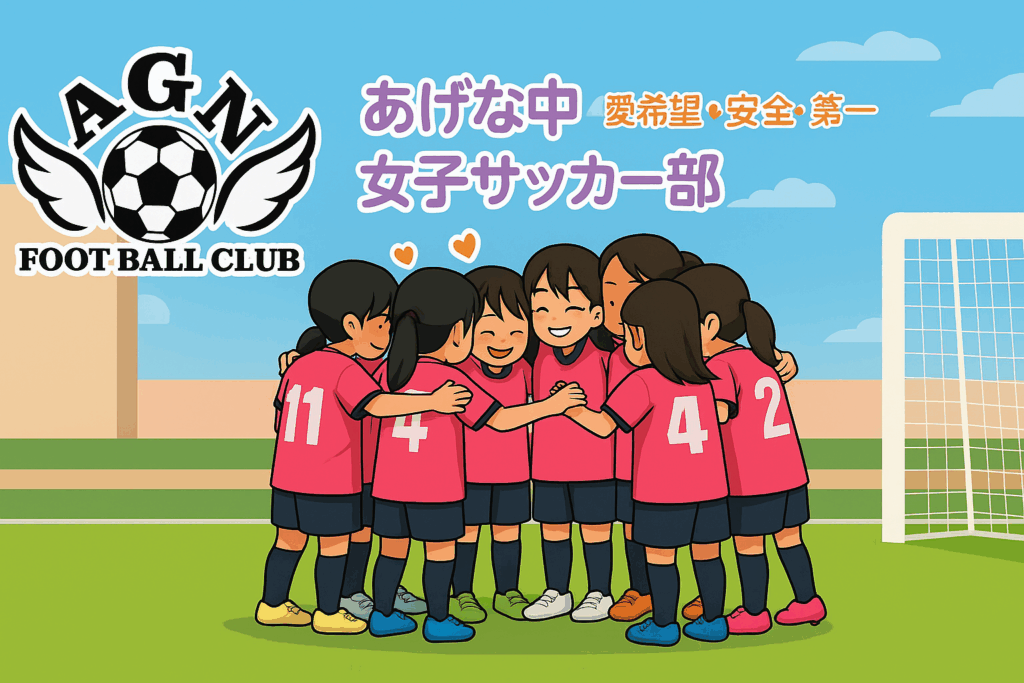 あげな中学校女子サッカー部は、「愛・勇気・安全第一」をモットーに、地域の方々、保護者の皆さま、そして仲間たちとともに日々成長を続けています。